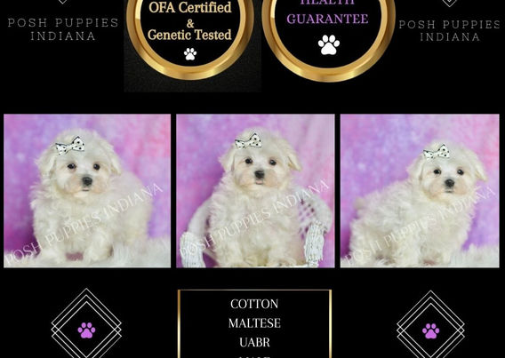 Cotton is a delightful little boy Maltese with a pure white coat that is as soft and fluffy as his name suggests. His luxurious fur cascades gracefully, making him irresistibly cuddly and elegant. With bright, sparkling eyes filled with curiosity and warmth, Cotton is always ready for playtime or cozy snuggles. His playful spirit and affectionate nature make him a cherished companion, bringing joy and laughter to every moment. Cotton's gentle demeanor and loving personality ensure that he’s not just a pet, but a beloved member of the family, adding a touch of sweetness to everyday life.