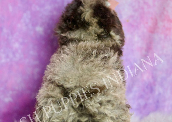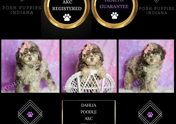 Meet Dahlia, an adorable chocolate merle female poodle puppy! With her soft, wavy coat adorned in a unique blend of rich chocolate and lighter merle patterns, she captures hearts at first glance. Her expressive, dark eyes are full of curiosity and playfulness, reflecting her lively spirit.
