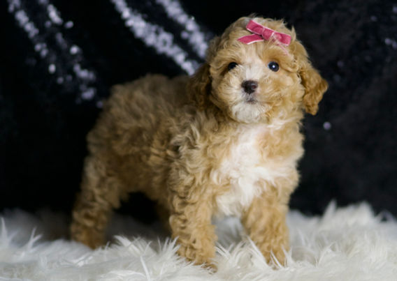 Meet Stella, the sweet female Maltipoo with a gorgeous apricot and white coat! This charming little pup is full of personality, exuding warmth and affection wherever she goes. With her fluffy fur and bright, sparkling eyes, Stella is not just adorable but also incredibly playful. She loves to explore her surroundings, chasing after her favorite toys and making new friends along the way. Her gentle nature and loving spirit make her the perfect companion for snuggles and adventures alike. Whether she’s prancing around or cuddling up beside you, Stella is sure to bring joy and happiness to your life!